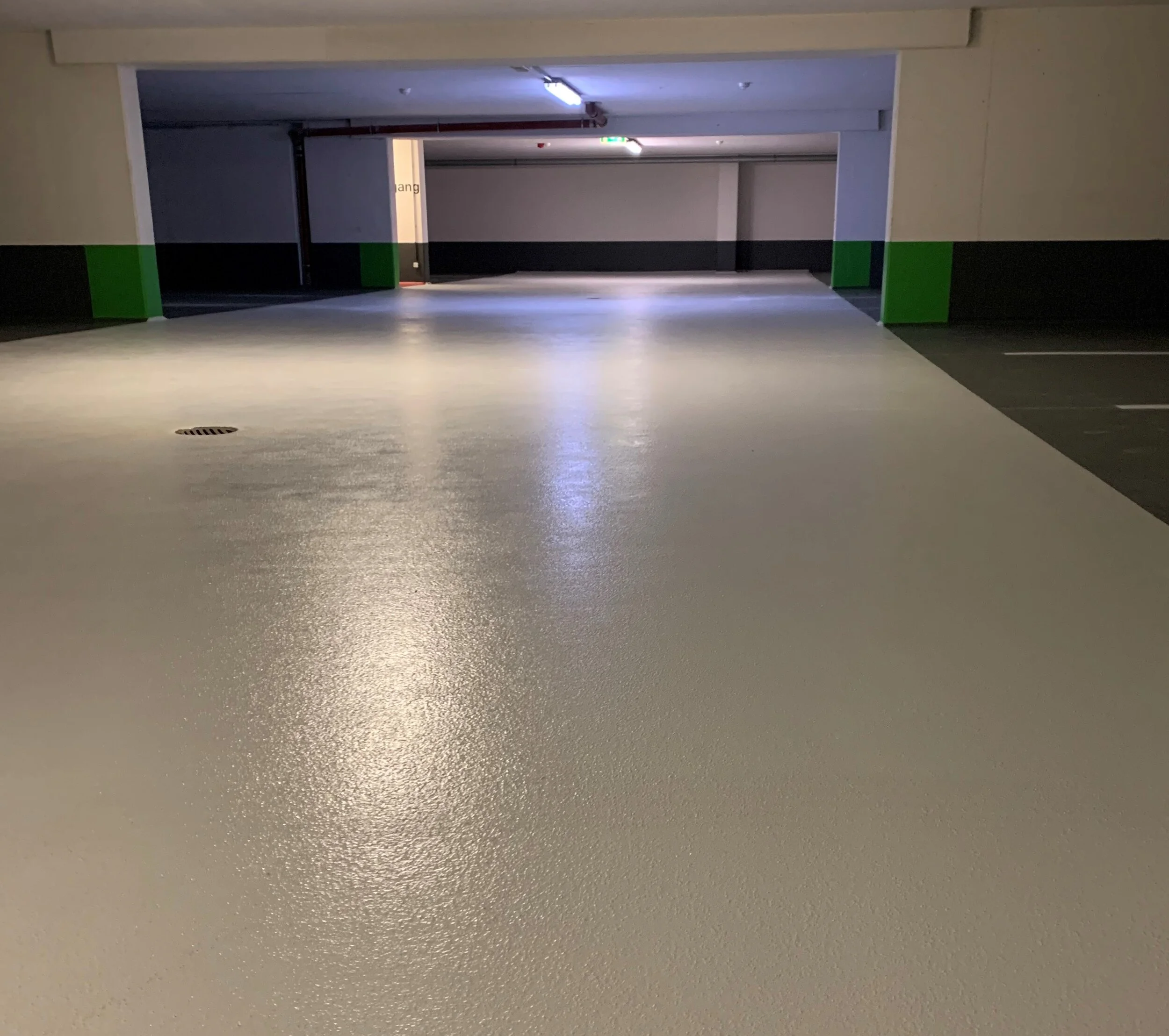 CSE Construction hat die Tiefgarage des Dorint Hotels in Mannheim erfolgreich saniert. In nur zehn Wochen Bauzeit musste hierfür eine Fläche von rund 10.000 qm bearbeitet werden. Dies umfasste zunächst das vollflächige Fräsen und Kugelstrahlen der Tiefgaragenebenen und -rampen sowie das Schleifen der Sockel, gefolgt vom Auftrag einer starren OS 8 Beschichtung auf die gesamten Boden- und Sockelflächen. Die Wand- und Stützenbereiche wurden ebenenweise farblich gekennzeichnet, um eine bessere Orientierung innerhalb der Tiefgarage zu ermöglichen. Das Farbkonzept sah zudem vor, dass Fahr- und Parkbereiche jeweils einen unterschiedlichen Farbton erhalten. Trotz des sehr engen Zeitplanes konnte CSE die Arbeiten fristgerecht abschließen.